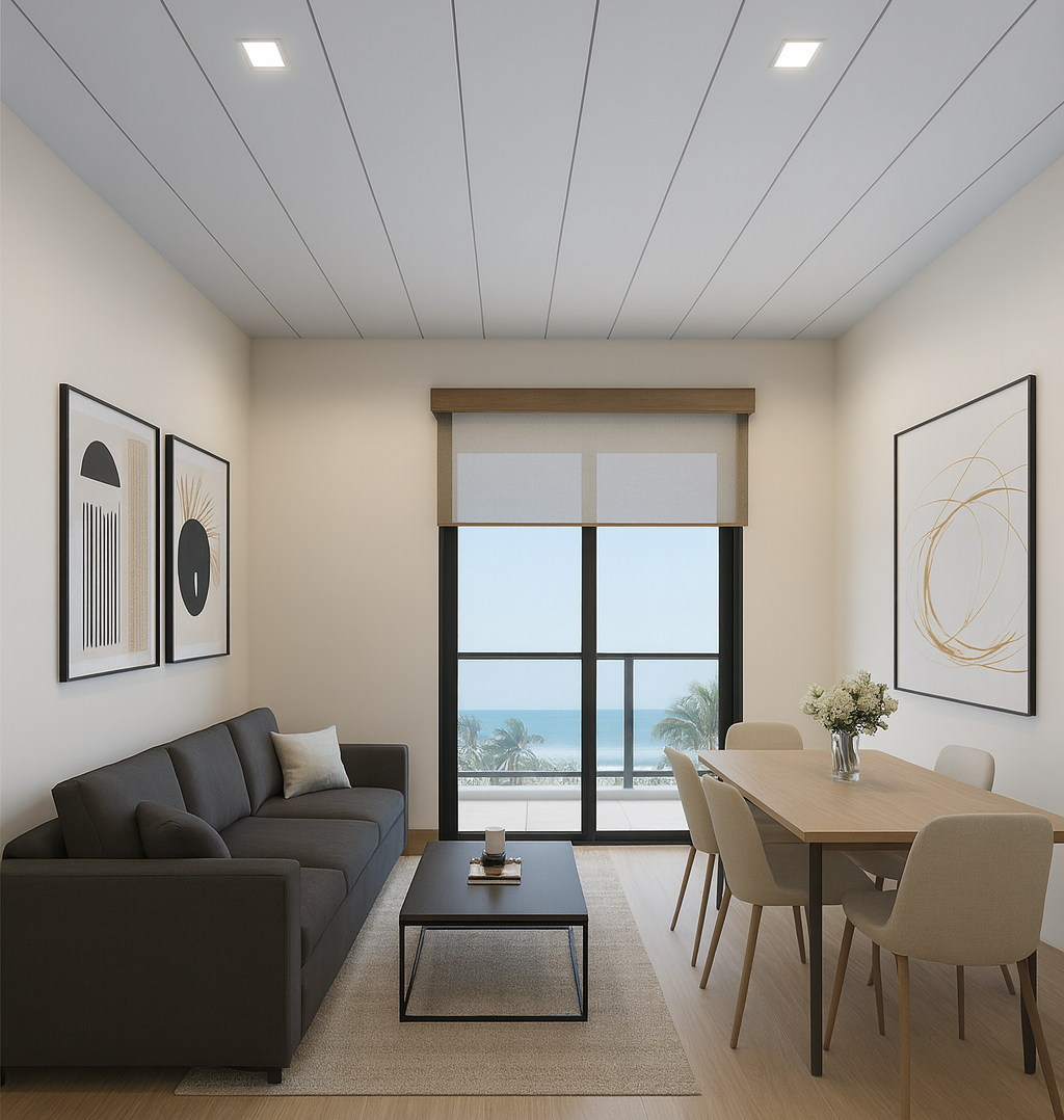 Our interlocking PVC ceiling panels are engineered for effortless handling and fast installation. Their seamless, refined surface delivers a clean, modern finish that designers and decorators favour for high-end interiors. The boards require no additional plastering or painting, offering a true ready-to-install solution.